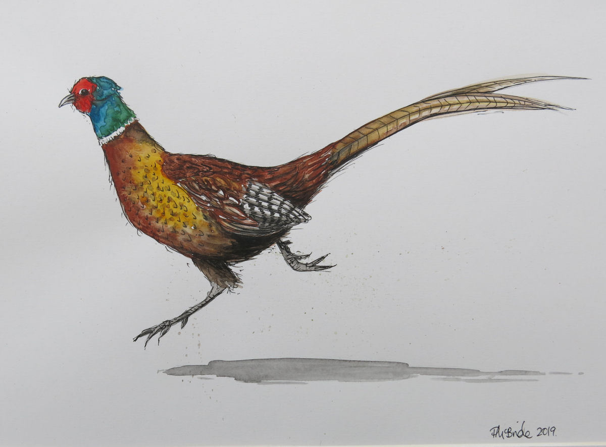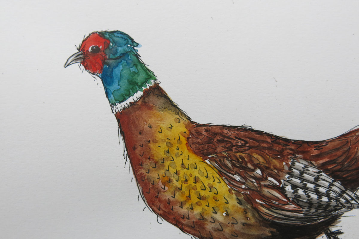 Painted by layering bold washes of watercolours, then finished with pen and ink, his striking colours really stand out and his fast running movement has been captured in this fluid painting.